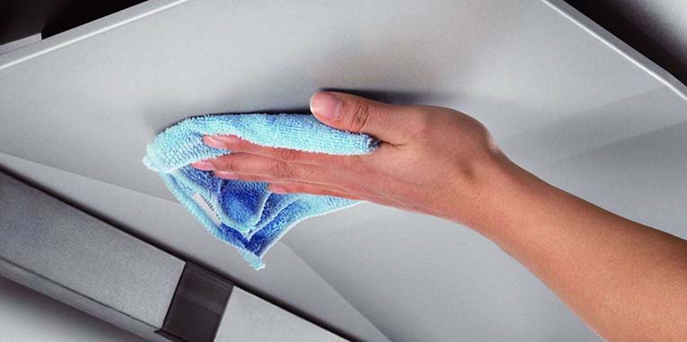 5、用抹布揩凈吸氣口周?chē)C(jī)殼表面及燈罩等處。還有記得要將油煙機(jī)盒清洗干凈。