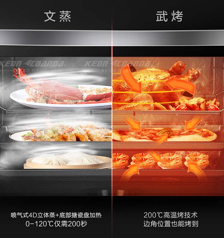 與此同時,科恩智能變頻大吸力集成灶5.0KW強勁火力,大火夠猛,小火夠穩(wěn),雙聚能環(huán)設計,熱量不流失,讓愛爆炒的用戶充分享受大火力帶來的極致體驗。可隨心調節(jié)火力大小,大火猛、小火穩(wěn),爆炒、蒸煮、燜燉等各種烹飪方式都能得心應手,給用戶們帶來暢爽的烹飪體驗,讓美食一觸即發(fā),美味全新升級!為解決更多烹飪需求,科恩智能變頻大吸力集成灶下方搭載62L黃金容量蒸烤箱,4D立體直噴式蒸烤模式,受熱跟更均勻,頂部不滴水,智能恒溫蒸烤,多種食物不串味并保證美食色澤亮麗,營養(yǎng)不流失!