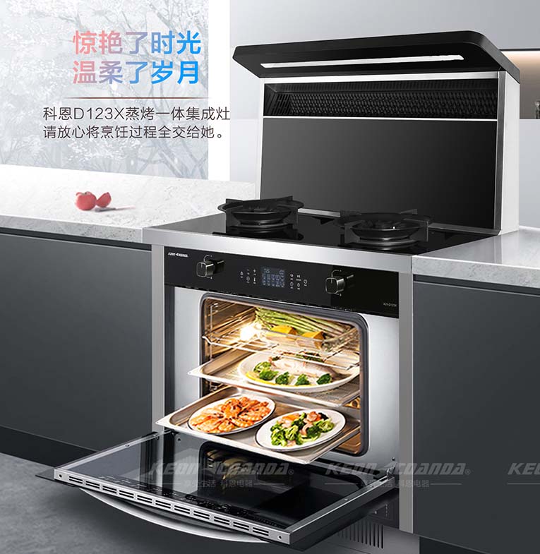 科恩D123X變頻蒸烤消一體智能集成灶為什么頗受消費(fèi)者的喜愛,原因有以下幾方面:1.省空間:科恩D123X集合煙機(jī)、燃?xì)庠睢⒄粝洹⒖鞠洹⑾竟竦榷喾N功能于一體,不僅節(jié)省空間還能省下一米櫥柜空間。2.吸油煙能力強(qiáng):比起傳統(tǒng)煙機(jī),科恩D123X離灶臺距離更近,吸力更強(qiáng),在油煙產(chǎn)生的第一時間就可以將其吸走,另外油煙的過濾網(wǎng)采用不沾油特氟龍材料,易清洗、耐高溫、抗腐蝕!3.大火力爆炒:尤其是爆炒菜,D123X鑄鐵鍋架帶雙聚能環(huán)設(shè)計,四通道獨立引射5.0KW大火力猛火爆炒,寬裕立體上進(jìn)風(fēng)充分燃燒,提高燃燒效率,降低一氧化碳排放。