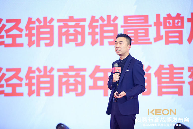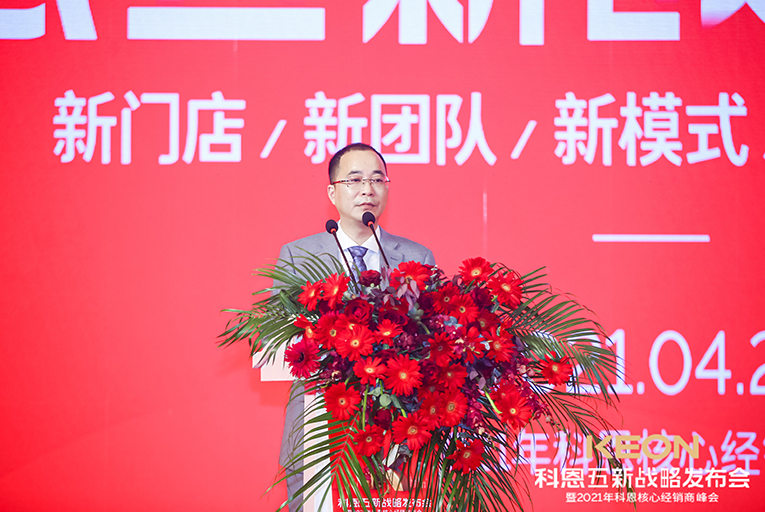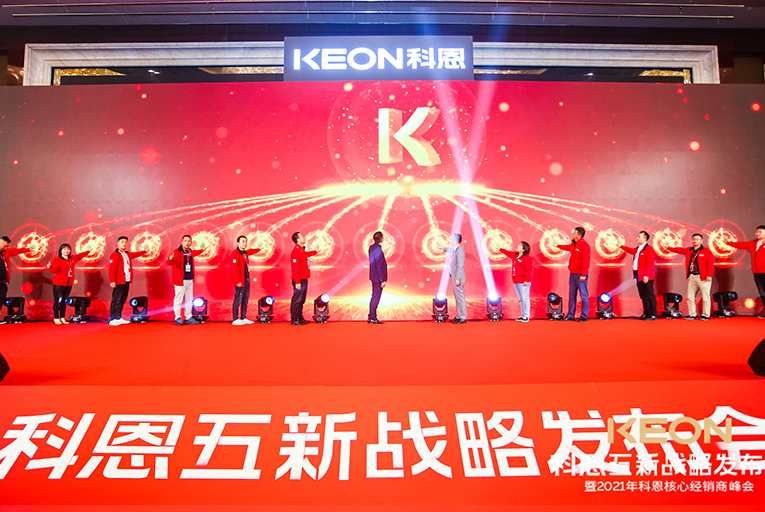 一場(chǎng)震撼全場(chǎng)的沙畫表演后正式會(huì)議正式開始,科恩電器董事長(zhǎng)俞鋒率先上臺(tái)致辭,首先對(duì)現(xiàn)場(chǎng)所有人表達(dá)了誠摯的感謝。2021年科恩電器將乘風(fēng)破浪拉開新帷幕,開啟全新篇章。隨后,科恩電器營銷總經(jīng)理趙漢斌發(fā)布“五新戰(zhàn)略”:新門店、新團(tuán)隊(duì)、新模式、新目標(biāo)、新未來!不忘初心,方得始終,一起開創(chuàng)新時(shí)代、新征程!