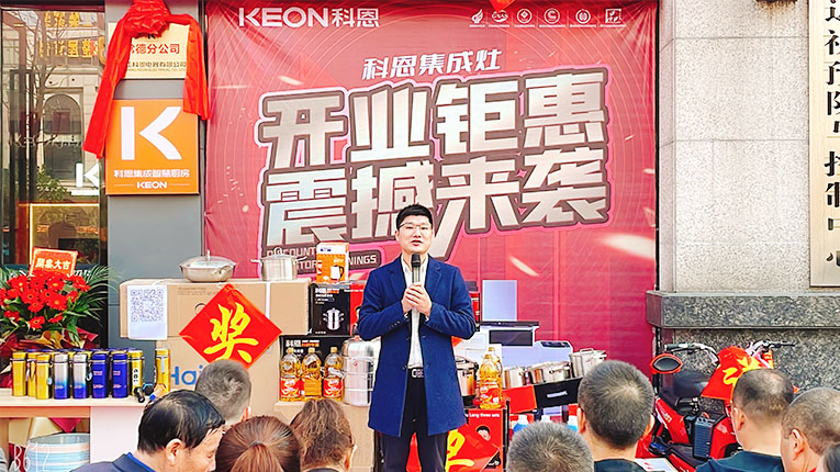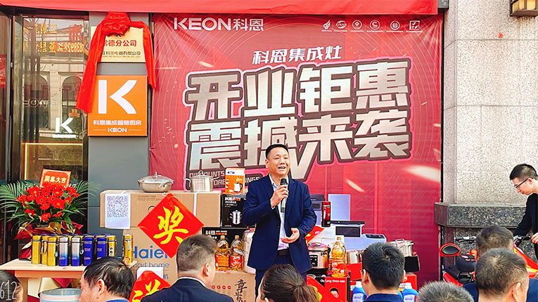 開業現場,科恩集成灶銷售總監錢總、總經辦陳總、華南大區、區域經理一同到場參與活動。