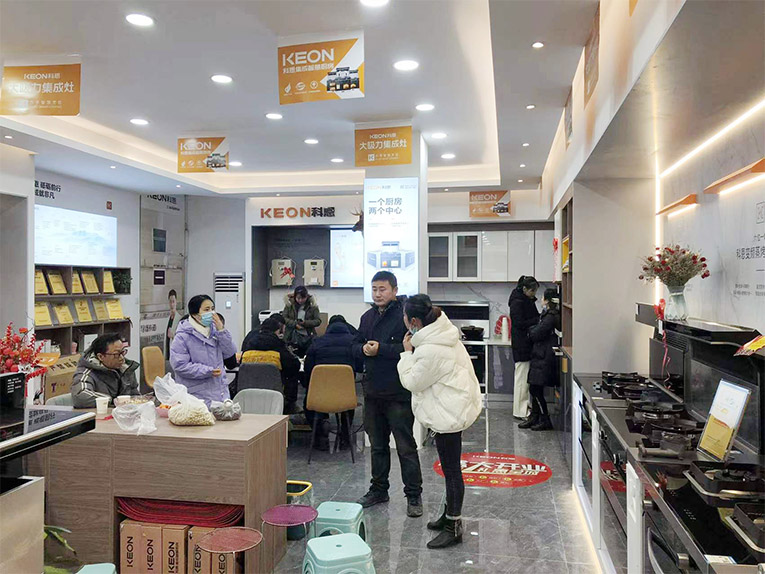 科恩西鄉專賣店融入了科恩全新新門店形象,優雅的環境、火爆的氛圍、精心準備的禮品,無一不彰顯著科恩集成灶的強大品牌實力。