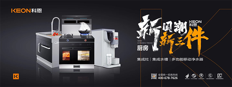 廚房新國潮,科恩新三件,樂享智慧廚房,形成以“集成灶、集成水槽、多功能移動凈水器”的科恩新三件,打造廚房新國潮,凈享健康生活,我的廚房我作主!