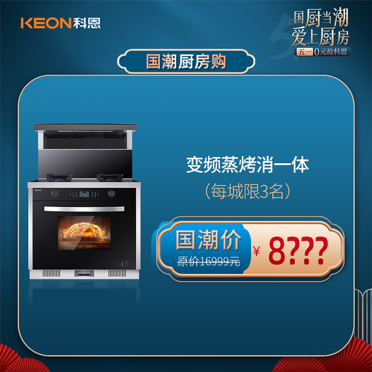 驚喜福利,重磅升級!科恩集成灶“廚房新國潮科恩新三件”產(chǎn)品火爆來襲,變頻蒸烤消一體集成灶、經(jīng)典消毒柜款集成灶、多功能集成式凈水器驚喜大放價!
