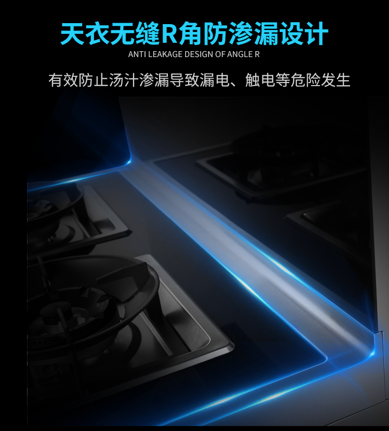 黑晶防爆鋼化玻璃灶臺(tái)面板,硬度高,韌性強(qiáng),外觀時(shí)尚動(dòng)感,搭配天衣無縫R角防滲漏設(shè)計(jì),不僅易清潔易打理,更能有效防止湯汁滲漏導(dǎo)致的漏電、觸電等危險(xiǎn)發(fā)生。