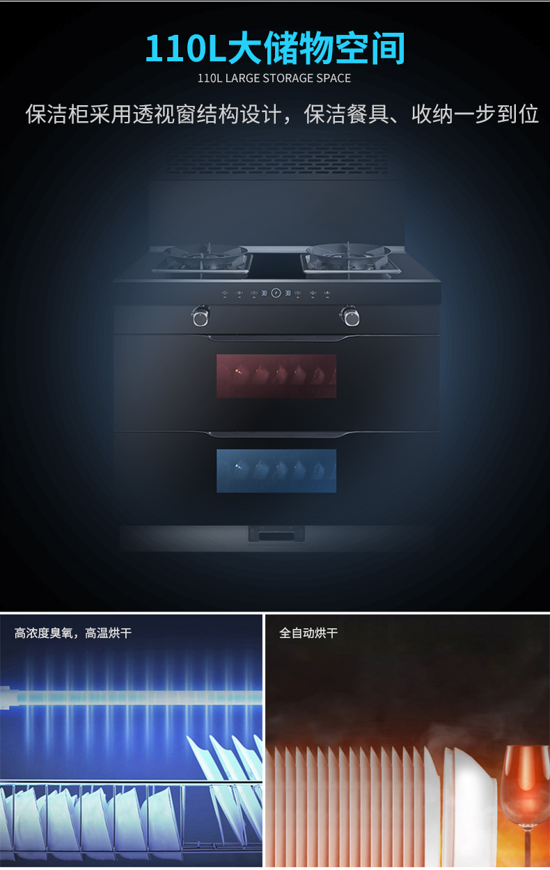 110L大儲(chǔ)物空間,輕松滿足5-8口之家日常所需,恒溫烘干,久存無異味,餐具干爽即去即用,消毒、收納一步到位。