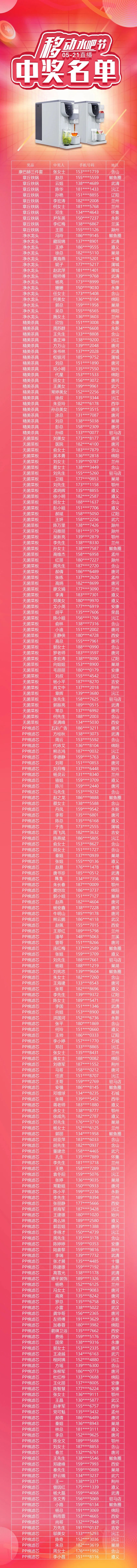 什么?聽說科恩移動(dòng)水吧節(jié)不僅能15天免費(fèi)體驗(yàn)一臺(tái)頂九臺(tái)的集成式凈水器,還能參與直播抽獎(jiǎng),而且還是100%中獎(jiǎng),科恩電器也太壕氣了吧!!!科恩移動(dòng)水吧節(jié),誓讓國(guó)人喝好水,全國(guó)免費(fèi)體驗(yàn)活動(dòng)正在火熱進(jìn)行中,重磅政策與誠(chéng)意豪禮,免費(fèi)體驗(yàn),產(chǎn)品始終如一。為回饋消費(fèi)者,科恩移動(dòng)水吧節(jié)直播抽獎(jiǎng)活動(dòng)順利舉行,凡參與免費(fèi)體驗(yàn)活動(dòng)即可抽取獎(jiǎng)品,實(shí)力寵粉,100%中獎(jiǎng)!抽獎(jiǎng)名單公示如下: