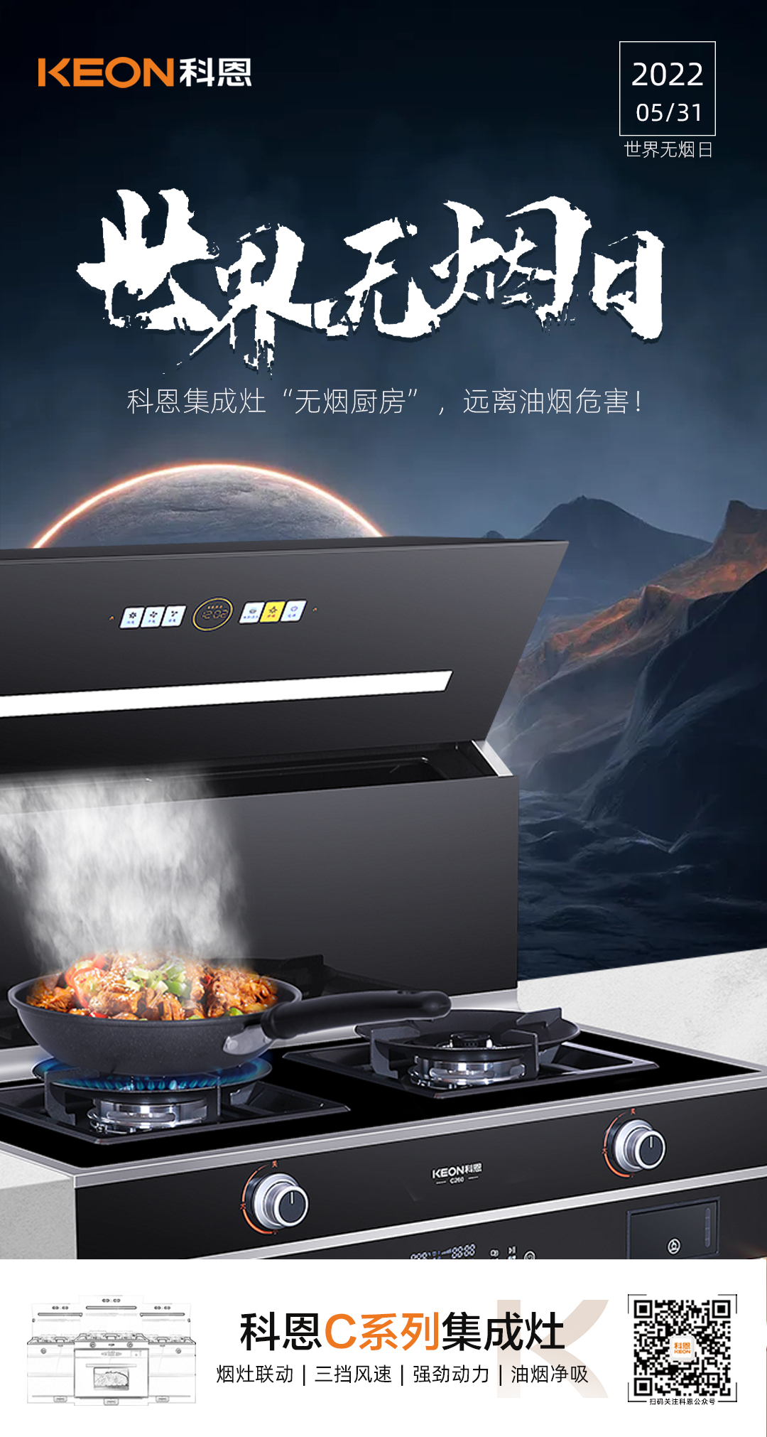 吸煙有害健康已是不爭的事實(shí),近年來大家對于香煙危害已極為重視,但卻鮮少有人知道,其實(shí)廚房油煙比煙草危害來得更悄無聲息,特別是在喜歡熱油爆炒的中國家庭,油煙已然一躍成為影響健康的頭號隱形殺手 !告別油煙困擾,遠(yuǎn)離油煙綜合征,你需要一臺科恩C260蒸烤消炸集成灶,陪你度過猛火爆炒油煙不過臉的每一天,有了TA,天天都是無煙日!