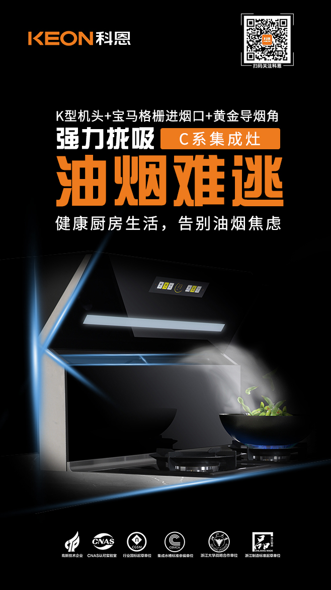 在烹飪環(huán)節(jié),側(cè)吸下排不跑煙是集成灶的必備基本功深受大眾喜愛,科恩C260在此基礎(chǔ)上突破常規(guī),創(chuàng)造性的采用以KEON首字母K為標(biāo)識的機(jī)頭設(shè)計(jì),其俯沖式角度、搭配寶馬格柵進(jìn)煙口,在深腔的加持下,攏吸效果更為出色,三者相輔相成,形成黃金控?zé)焻^(qū),同步搭配瞬吸大吸力,把油煙扼殺在萌芽狀態(tài),油煙不過臉,無懼猛火爆炒挑戰(zhàn),縱享無煙廚房!