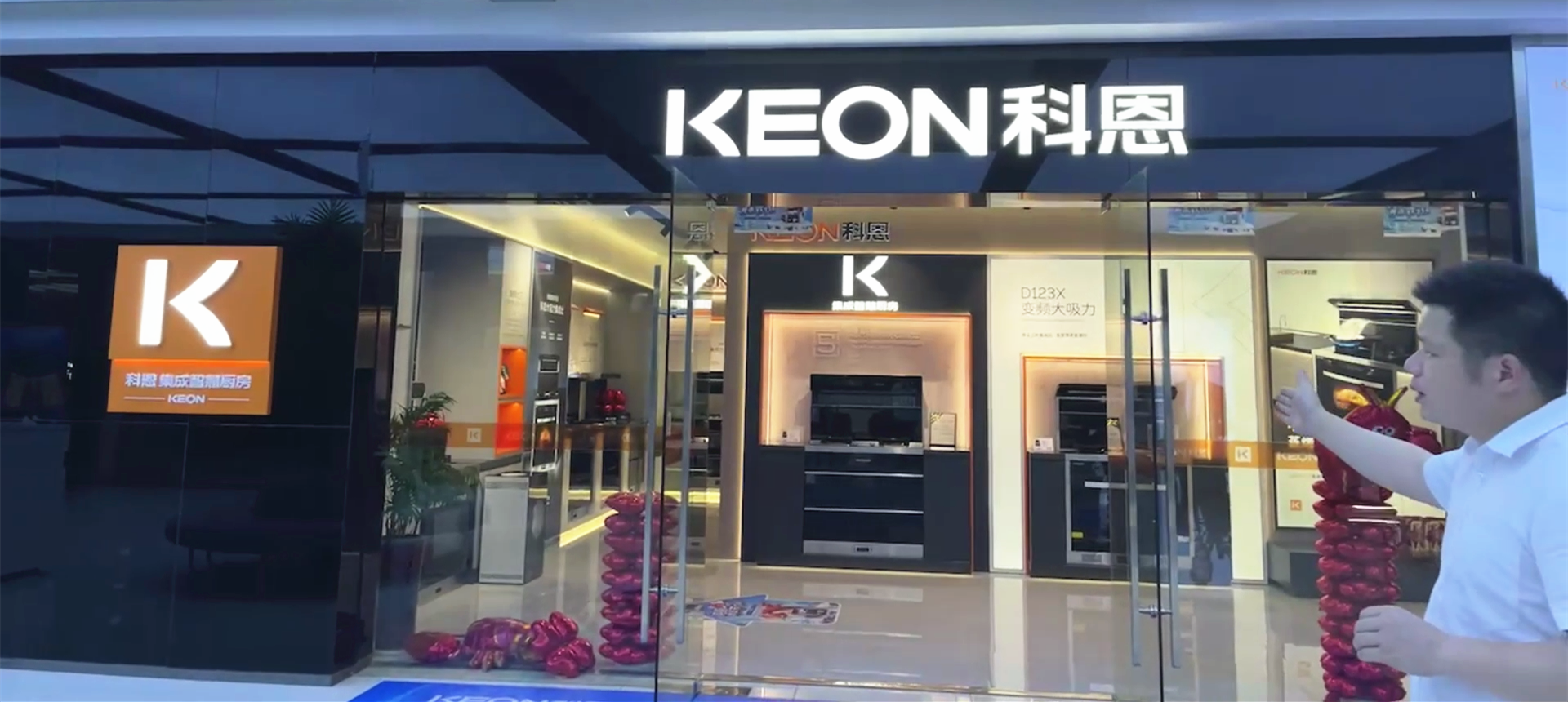 科恩營銷副總監--陳青龍帶領大家沉浸式走進科恩,通過鏡頭直觀地了解科恩文化、榮譽及企業發展史,并向大家展示了廚房文化科技體驗館及1:1打造的科恩新門店展廳。科恩新門店通過模塊化的方式,將核心產品模塊以及開放式廚房體驗場景植入門店,通過打造終端差異化銷售場景,構建新的動銷系統店面營造,從“新”超越!