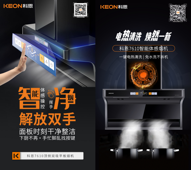科恩7610頂側雙吸體感煙機,高效凈煙無所懼!