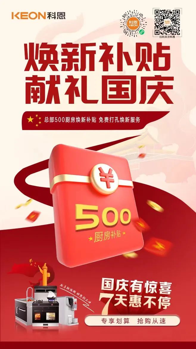 活動期間,凡老廚房煥新參加科恩本次活動,可獲得總部派發的500元煥新補貼并免費提供打孔煥新服務!