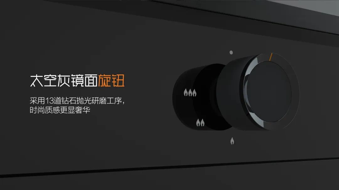 即使在旋鈕上,A3系列都彰顯出了它的與眾不同。A3系列集成灶采用太空灰鏡面旋鈕,需經過13道鉆石拋光研磨工序,才造就其曲線流暢,觸摸溫潤細膩!