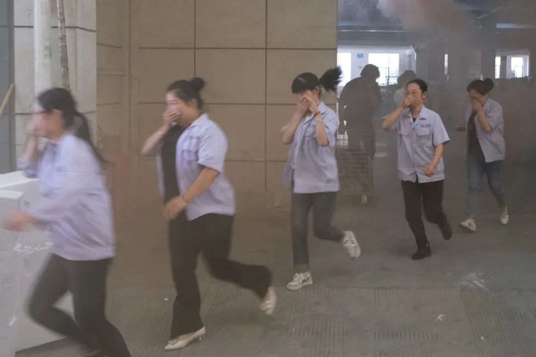 防火警報拉響,科恩迅速捂住口鼻,彎著腰,按消防疏散導圖轉移至安全區域,整個演練井然有序。