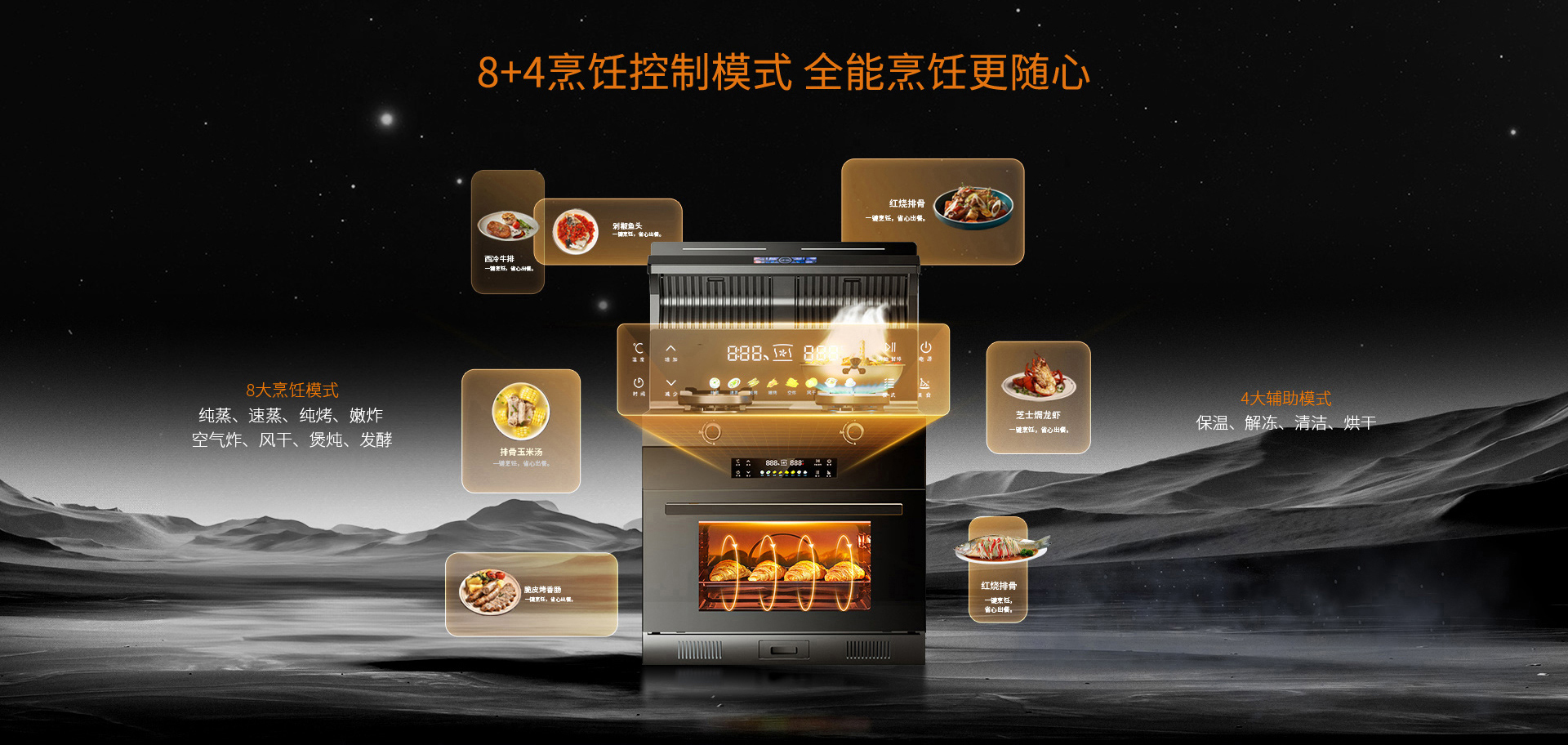 科恩G600防爆免清洗集成灶,一鍵開(kāi)啟全新烹飪模式蒸烤獨(dú)立設(shè)置,30L烤箱+50L蒸箱,可一次滿(mǎn)足,兩種需求,且G600可實(shí)現(xiàn)蒸烤炸燉,多種烹飪方式。