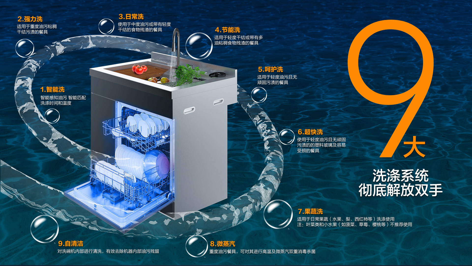 1、9大定制洗滌系統(tǒng)