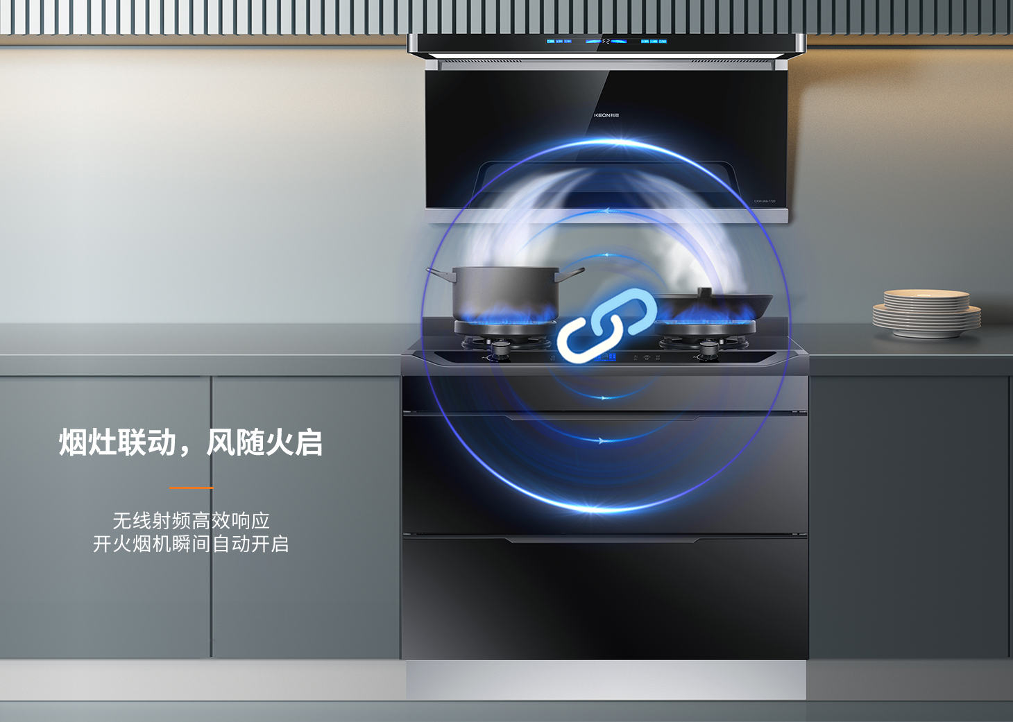 煙灶聯動,凈煙無憂。免除手忙腳亂操控,科恩集成烹飪中心,煙灶智控互聯,開火即排煙。5.2KW藍焰猛火系統,實現快速升溫,煎炒炸烙樣樣拿手,廚房小白也能變身中華小當家。