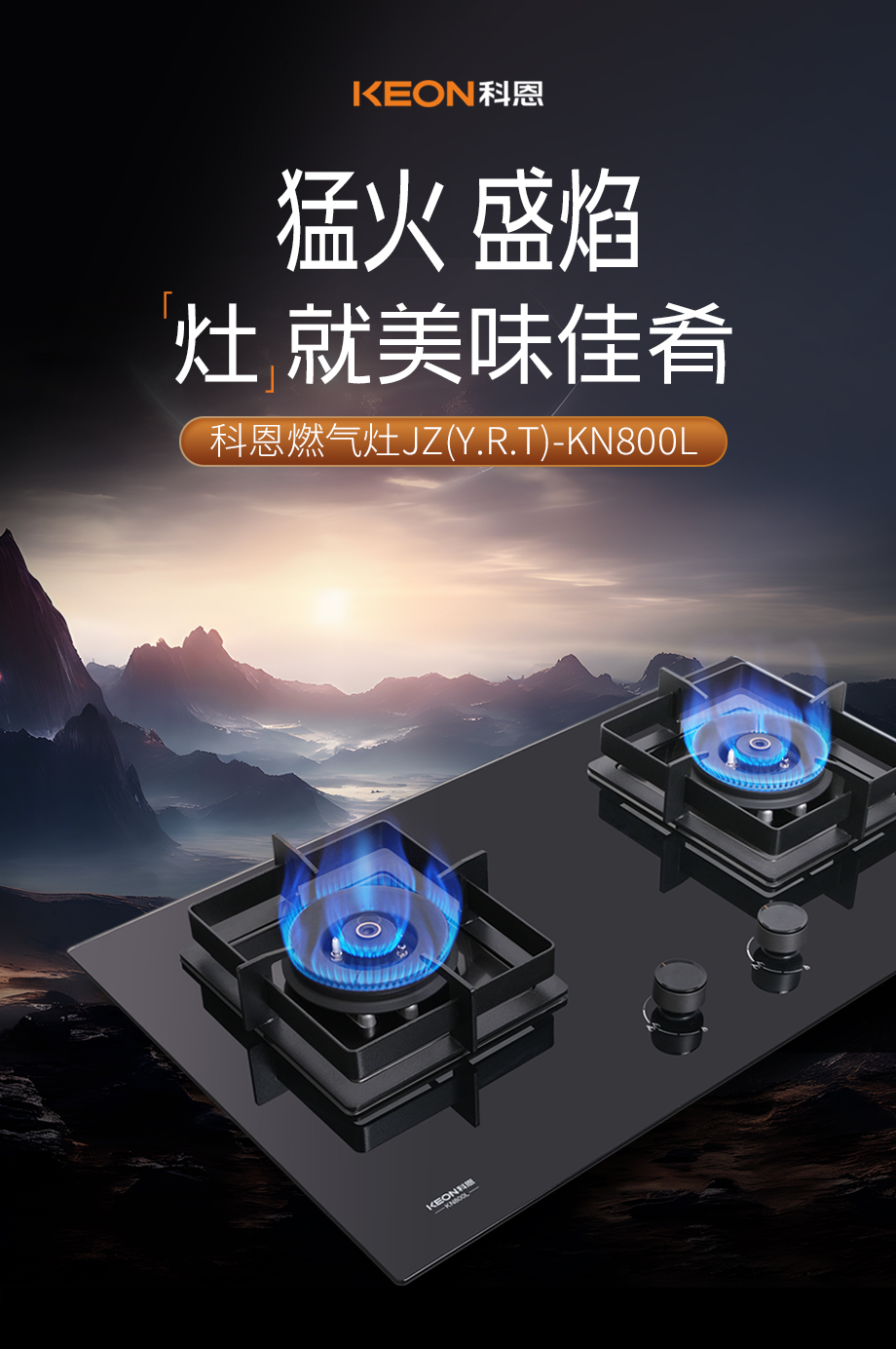 KN800L定義能量美學新范式,超大烹飪空間,隨心更換鍋具。黑晶面板防滑耐腐蝕,防滑旋鈕防升溫隔熱源,科恩800L灶具顏值與實力共存。