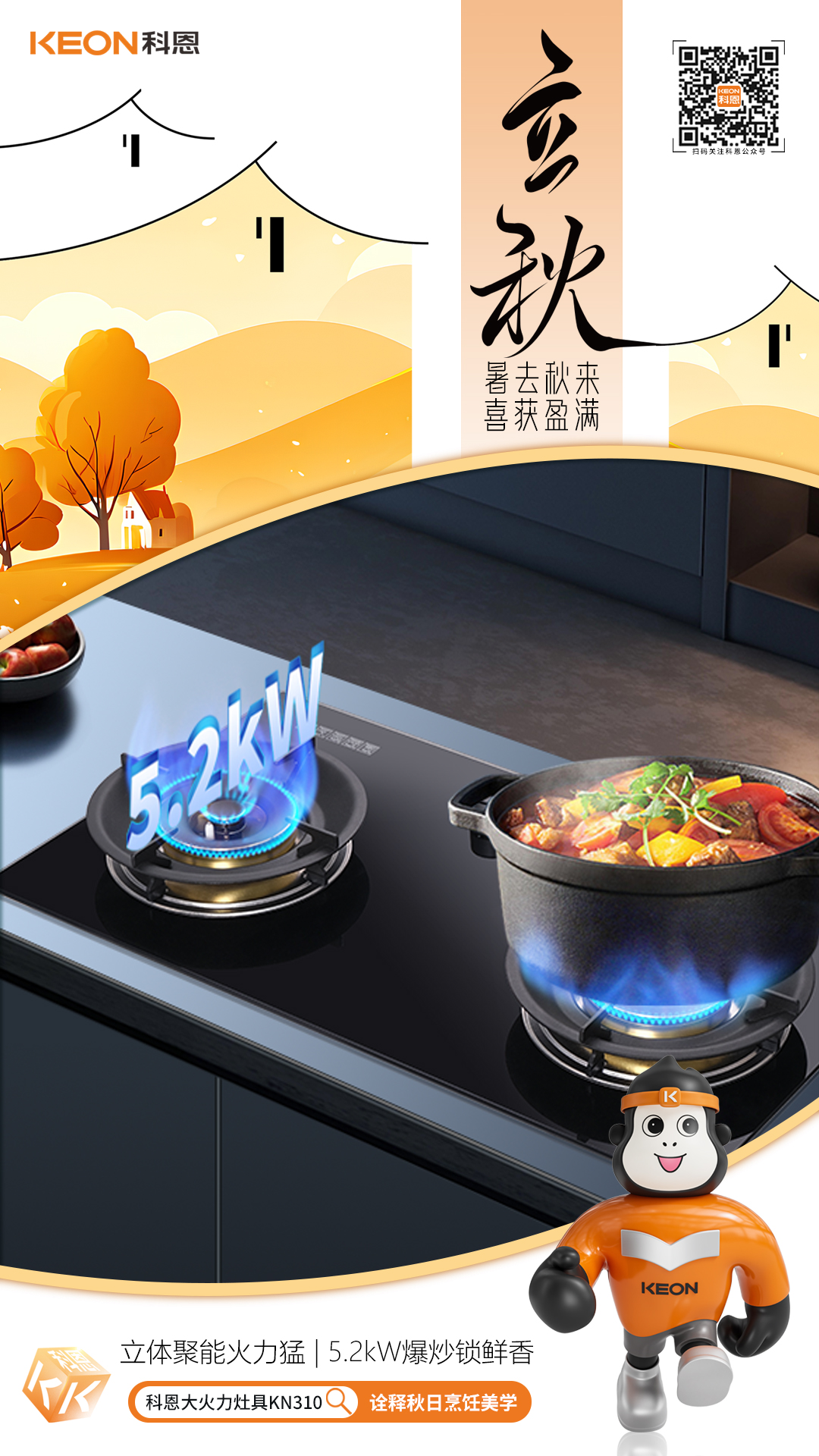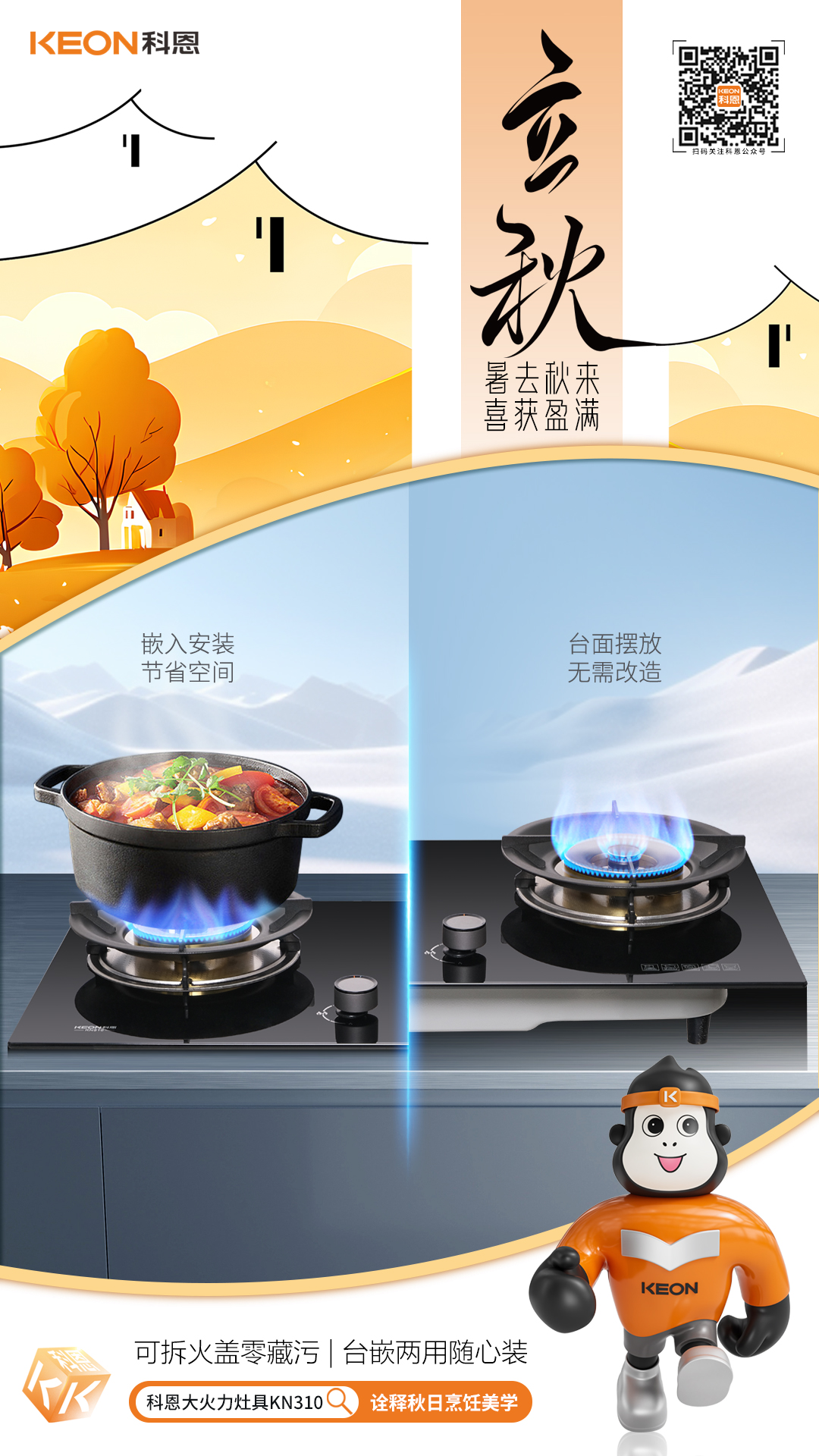 立秋煙火起,灶上煥新時。科恩匠心推出猛火灶具KN310,以“火候藝術”重塑廚房烹飪美學,讓每一味秋鮮都恰到好處,鎖住時節的醇厚與溫情,立秋貼秋膘,灶具煥新正當時!
