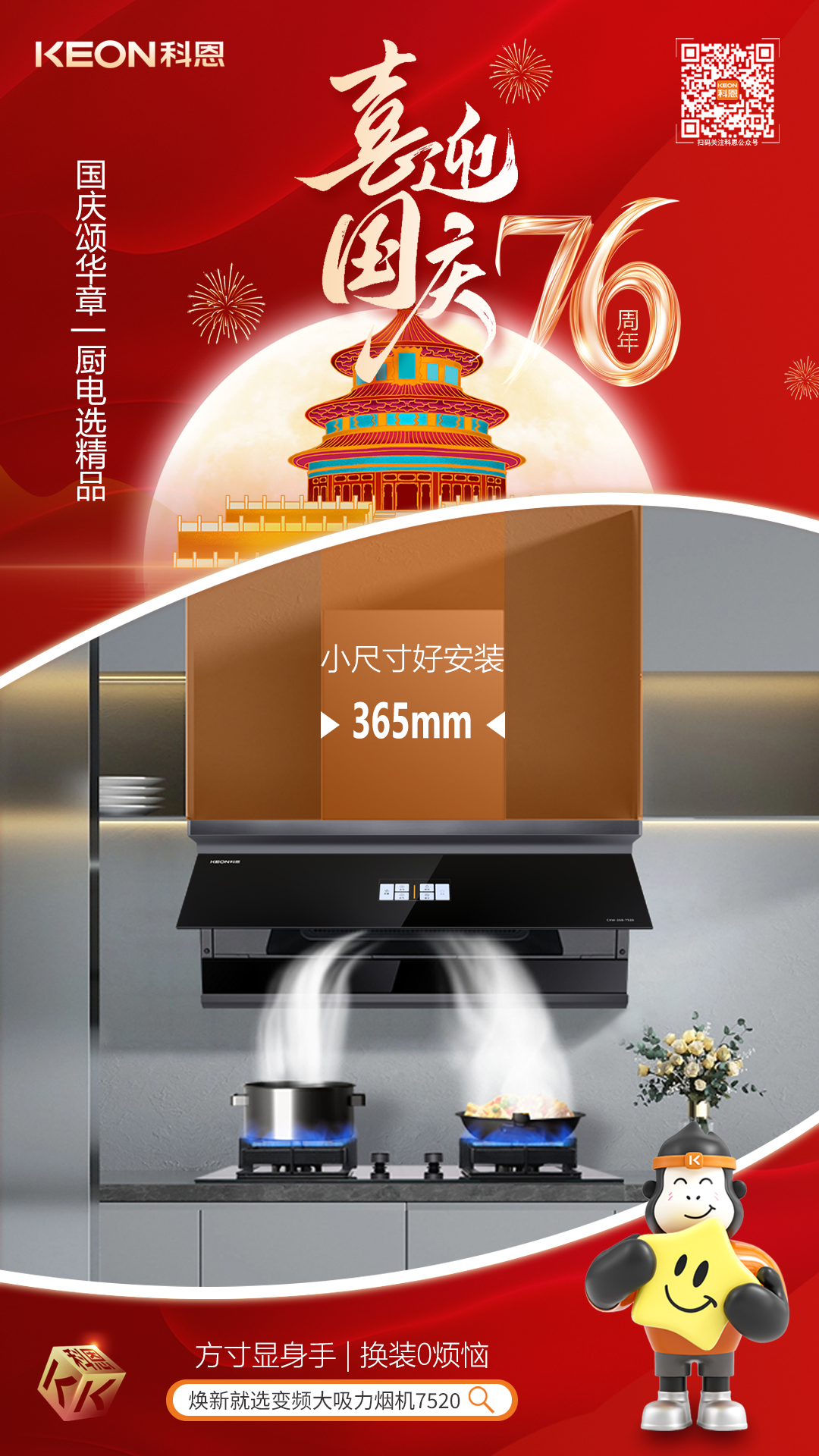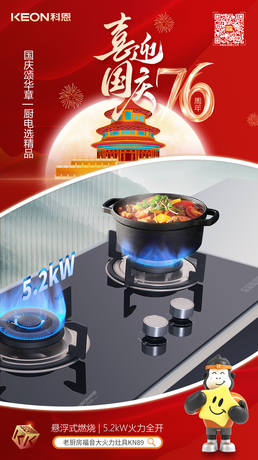 盛世華誕,家國同慶。科恩攜品質廚電,以科技賦能團圓時刻,重塑廚房呼吸美學。讓爆炒油煙遁于無形,讓家宴烹飪既高效又安心,守護每個家庭的假日煙火溫情。