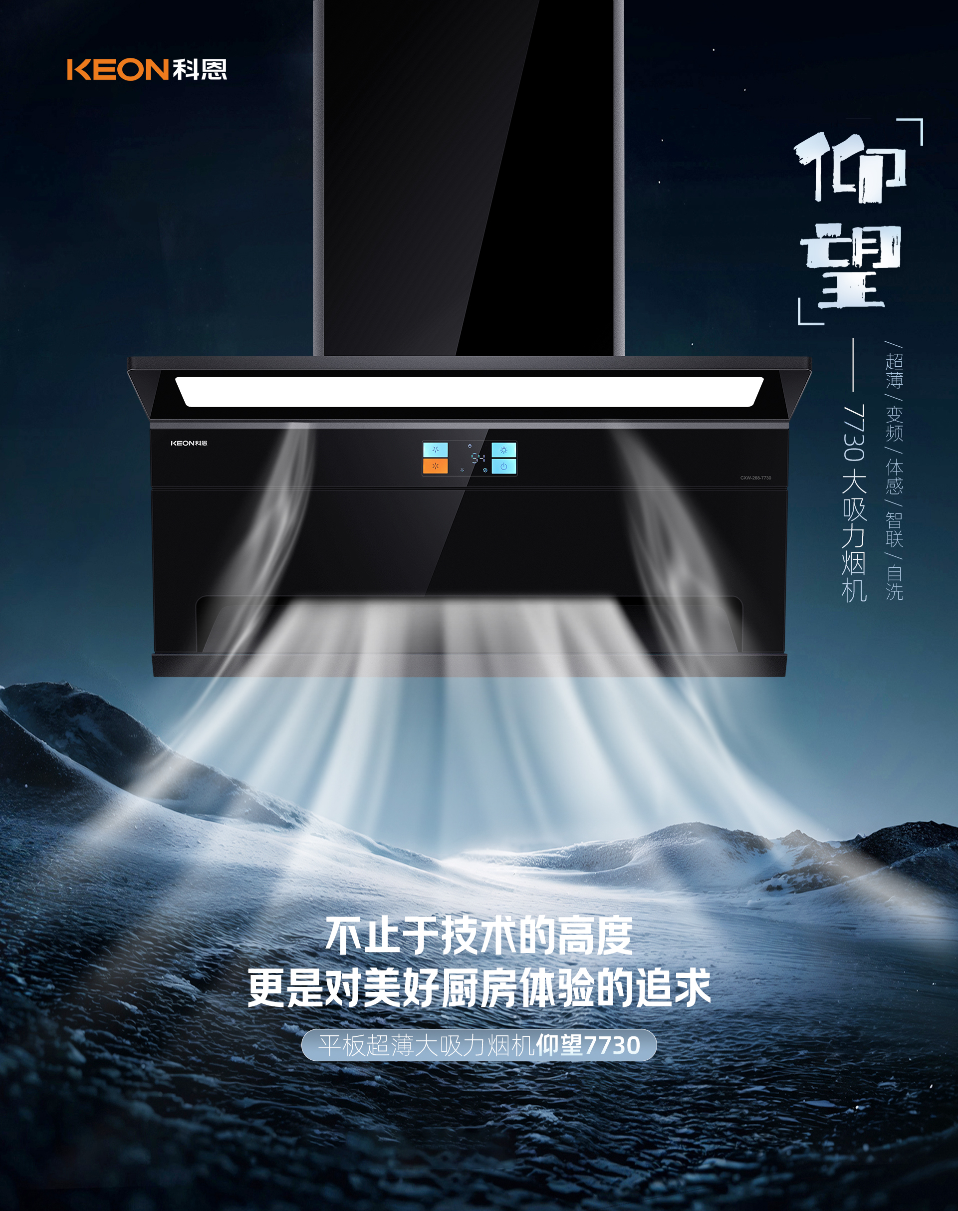 輕薄美學(xué),空間煥新傳統(tǒng)煙機(jī)笨重,廚房逼仄壓抑科恩7730黑騎士,打破空間桎梏。120°天鵝頸上仰設(shè)計(jì),2.0cm超薄視覺。0.5立方敞開空間,翻炒轉(zhuǎn)身不碰頭,特氟龍一體成型,不沾油污更顯質(zhì)感。鉆石切割背板,硬朗線條點(diǎn)亮廚房智控凈吸,告別油膩。爆炒油煙升騰快,傳統(tǒng)煙機(jī)難捕捉24m³澎湃吸力,高位頂吸加側(cè)吸,負(fù)壓區(qū)內(nèi)傾滑翔設(shè)計(jì),凈煙更快更徹底。揮手智控開關(guān)機(jī),調(diào)節(jié)風(fēng)量不沾油模塊化彩屏觸控,操作方便簡(jiǎn)單1000Pa強(qiáng)風(fēng)壓,高峰排煙不倒灌。聯(lián)動(dòng)便捷,清潔無憂烹飪分心忘開煙機(jī),油煙彌漫難收拾,7730+KN810L煙灶聯(lián)動(dòng),點(diǎn)火煙機(jī)自動(dòng)啟磁吸科恩達(dá)網(wǎng)板,一拉一提易清潔電熱自清洗,甩掉油污保吸力,3分鐘延時(shí)關(guān)機(jī),余煙散盡更健康。IP67全景天幕燈,護(hù)眼清晰烹佳肴