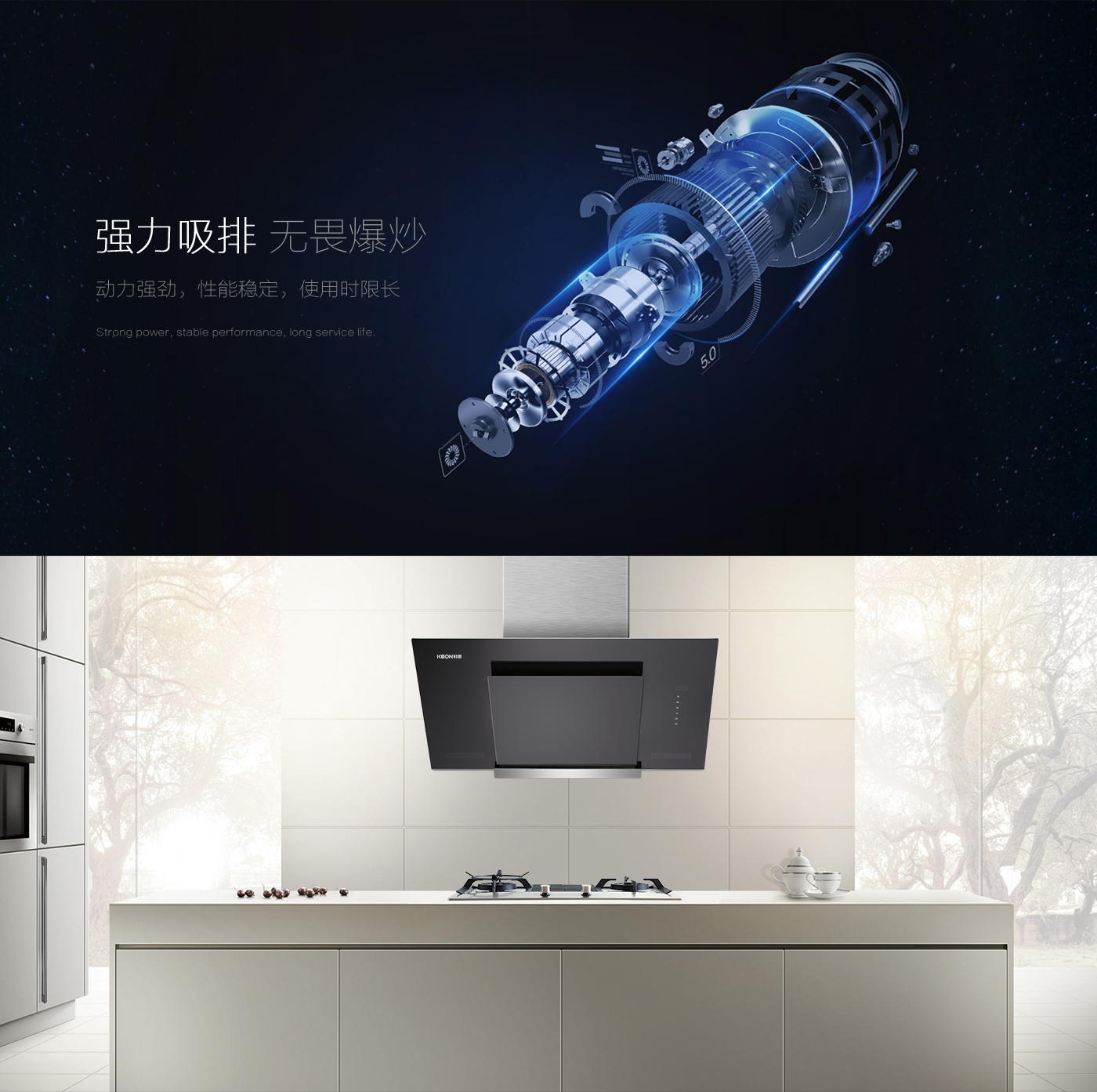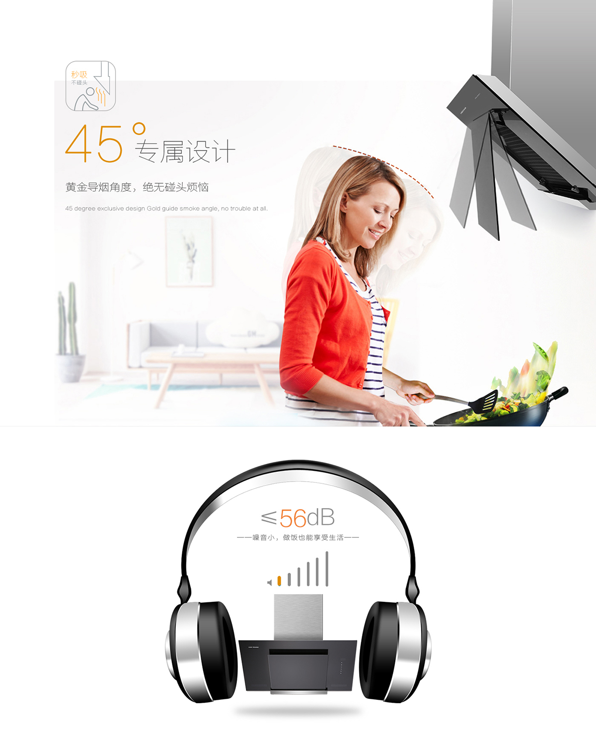 - 45°專屬設計,黃金導煙角度,無碰頭煩惱。