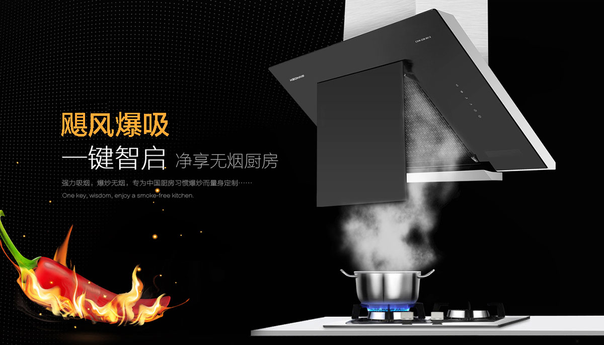 - 智能側吸變頻煙機,解決公共煙道烹飪高峰排煙難的問題。
