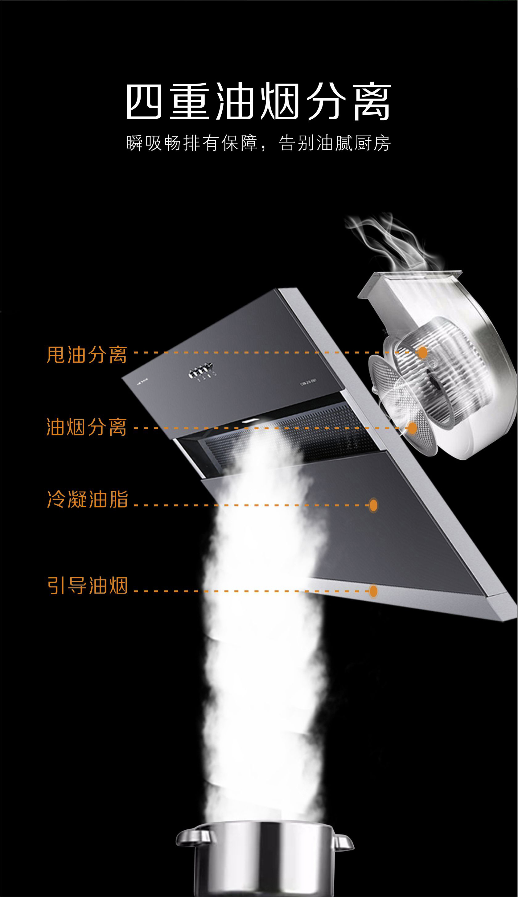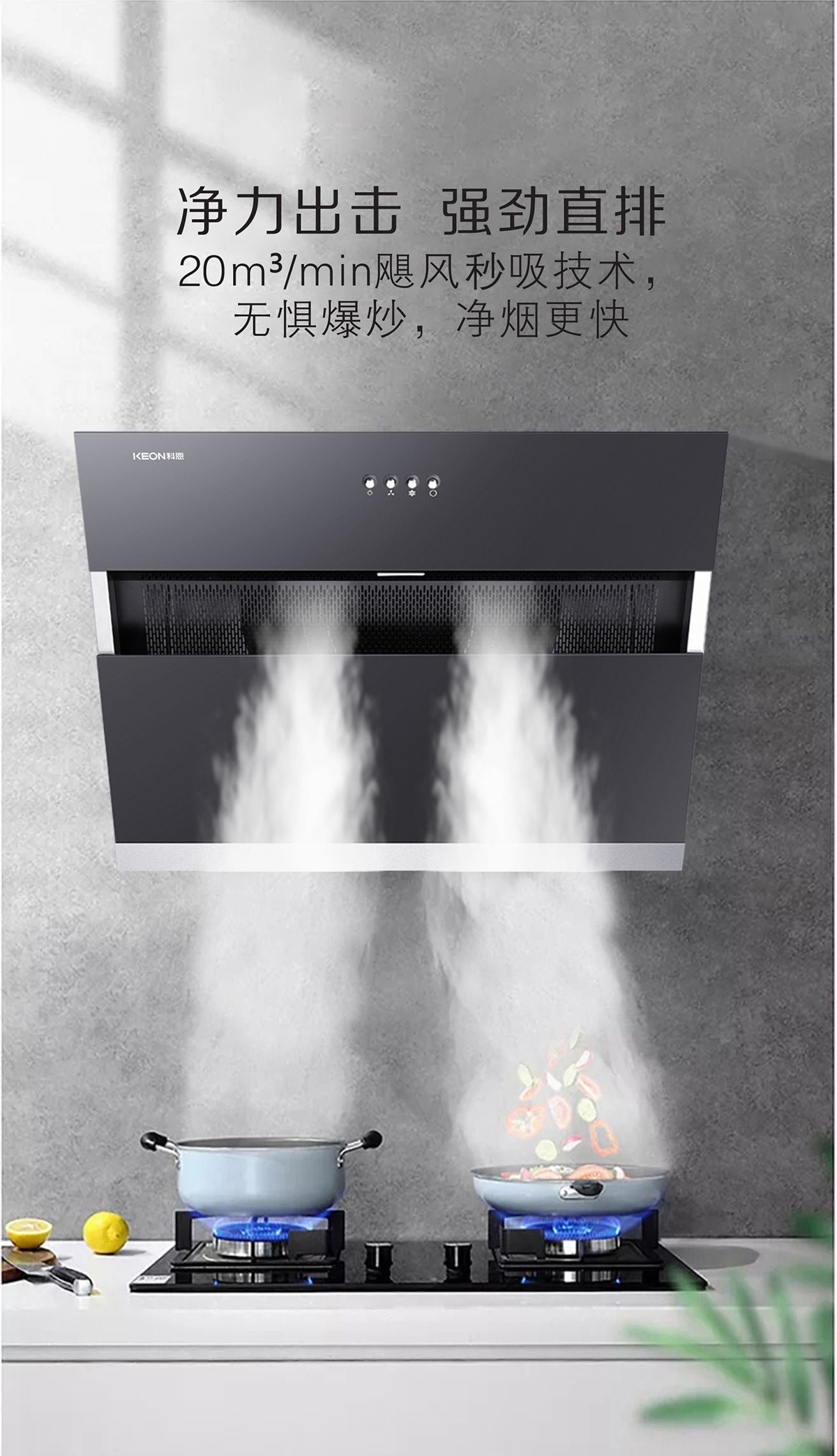 - 凈力出擊,強勁直排,颶風爆吸技術,無懼爆炒,凈煙更快。