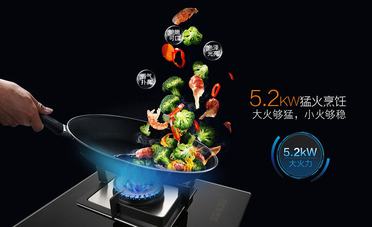 - 5.2KW大火力,精控勁火,火焰平穩(wěn),受熱均勻,節(jié)能猛火兩不誤