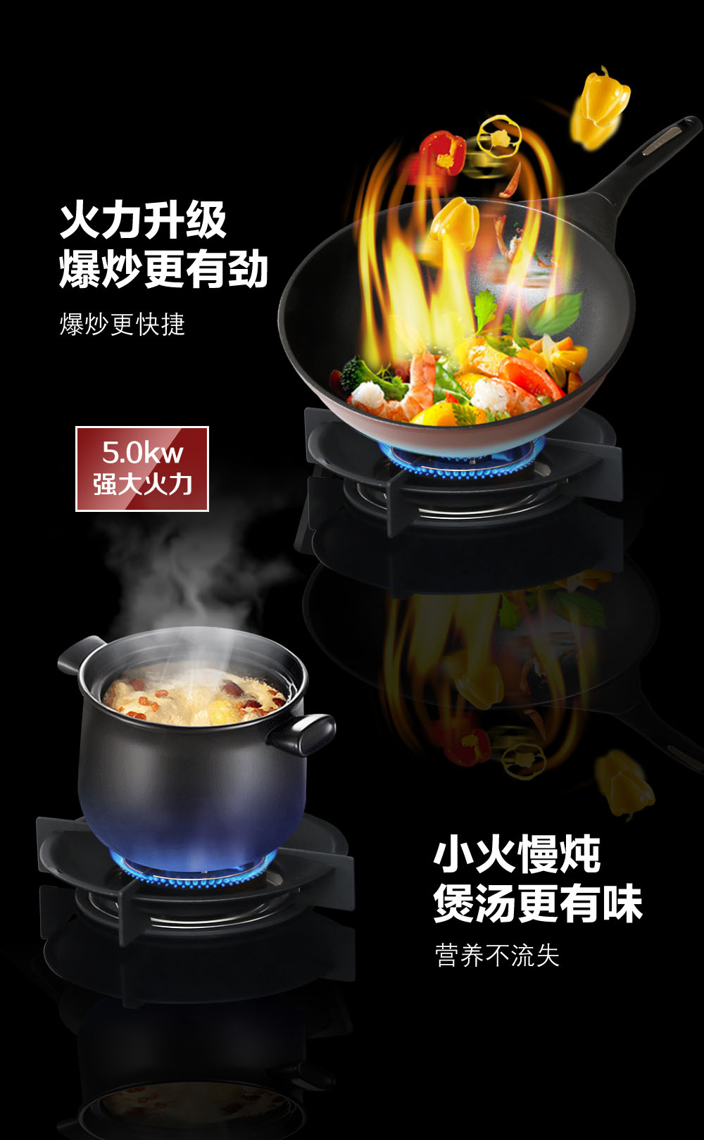 - 5.2KW火候,大火夠猛,小火更穩,爆炒更舒心