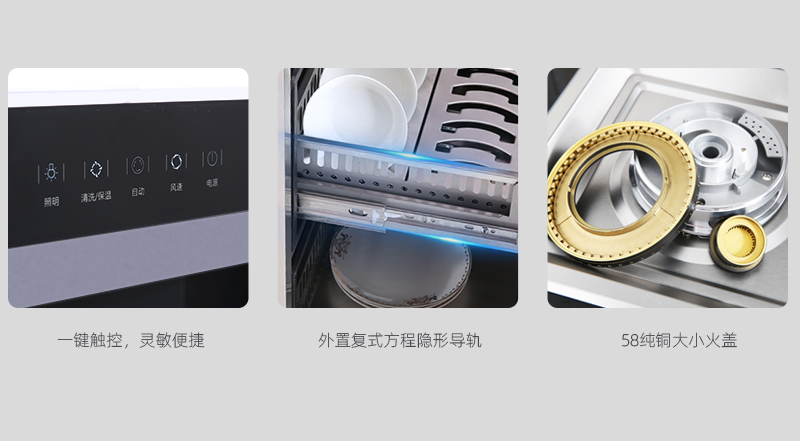 - 大容量雙層消毒柜,鍋碗瓢盆輕松盡收,臭氧+紫外線雙重消毒,深層殺死細菌