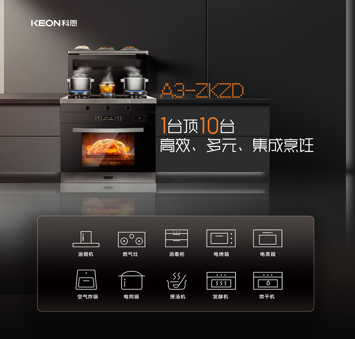 - 1臺頂10臺,高效多元,集成烹飪,樂享智慧廚房