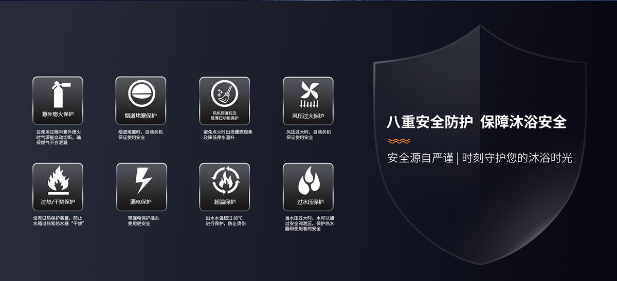 安全排氣裝置,當意外停電、煙道堵塞時自動關閉燃氣