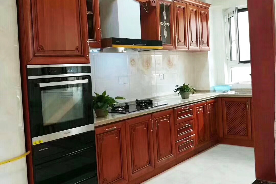 科恩浙江經(jīng)銷商提供的煙灶消+電烤箱、蒸汽爐廚房實景圖