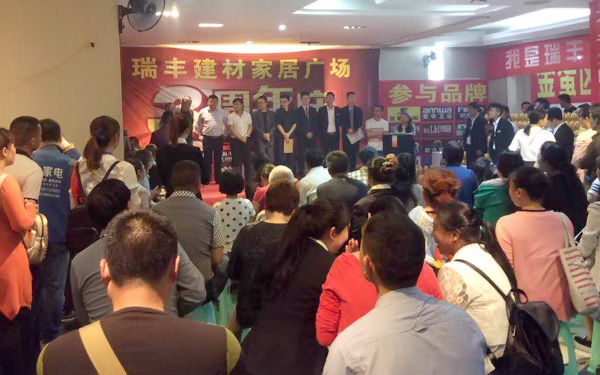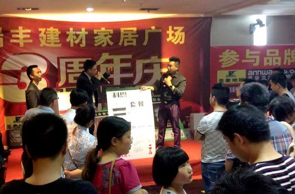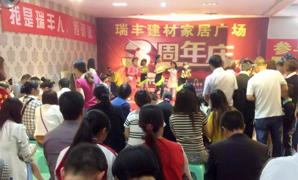 周年慶活動現(xiàn)場,大批業(yè)主聚集在瑞豐建材家居廣場,共同慶祝瑞豐建材3周年的生日。而瑞豐建材為了回饋廣大業(yè)主的厚愛,聯(lián)合全場商家為大家了準備了精美的禮品與超值的優(yōu)惠。